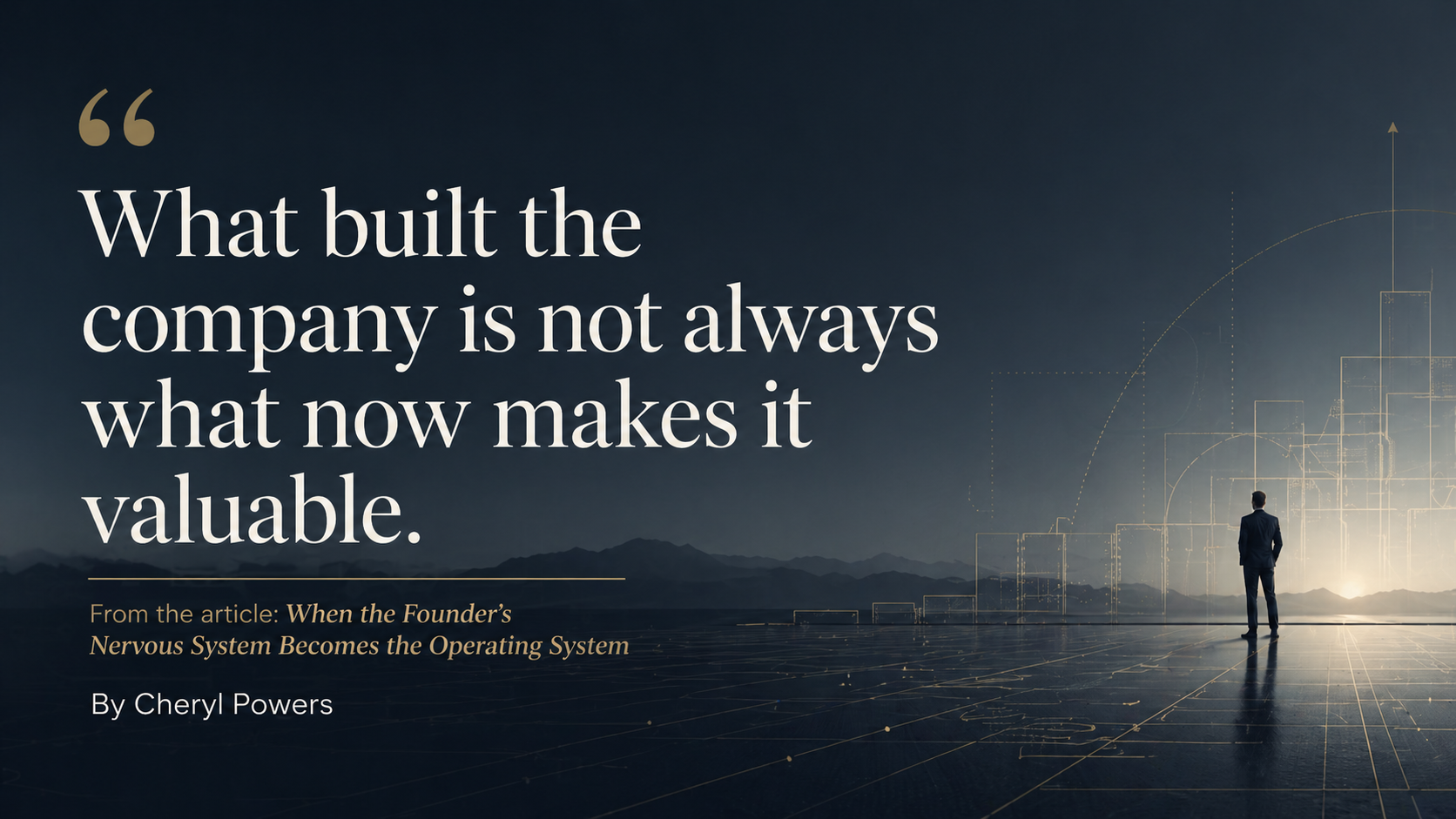 If you're a founder, you build through speed, vigilance, intervention, control, and sheer personal force. In the early years, those traits often help save your company. You catch mistakes before they spread. You protect customers. You hold standards together when there isn't yet enough structure to do that job. You keep the business alive through thin margins, weak hires, late payments, near misses, and the thousand small indignities of trying to build something real.